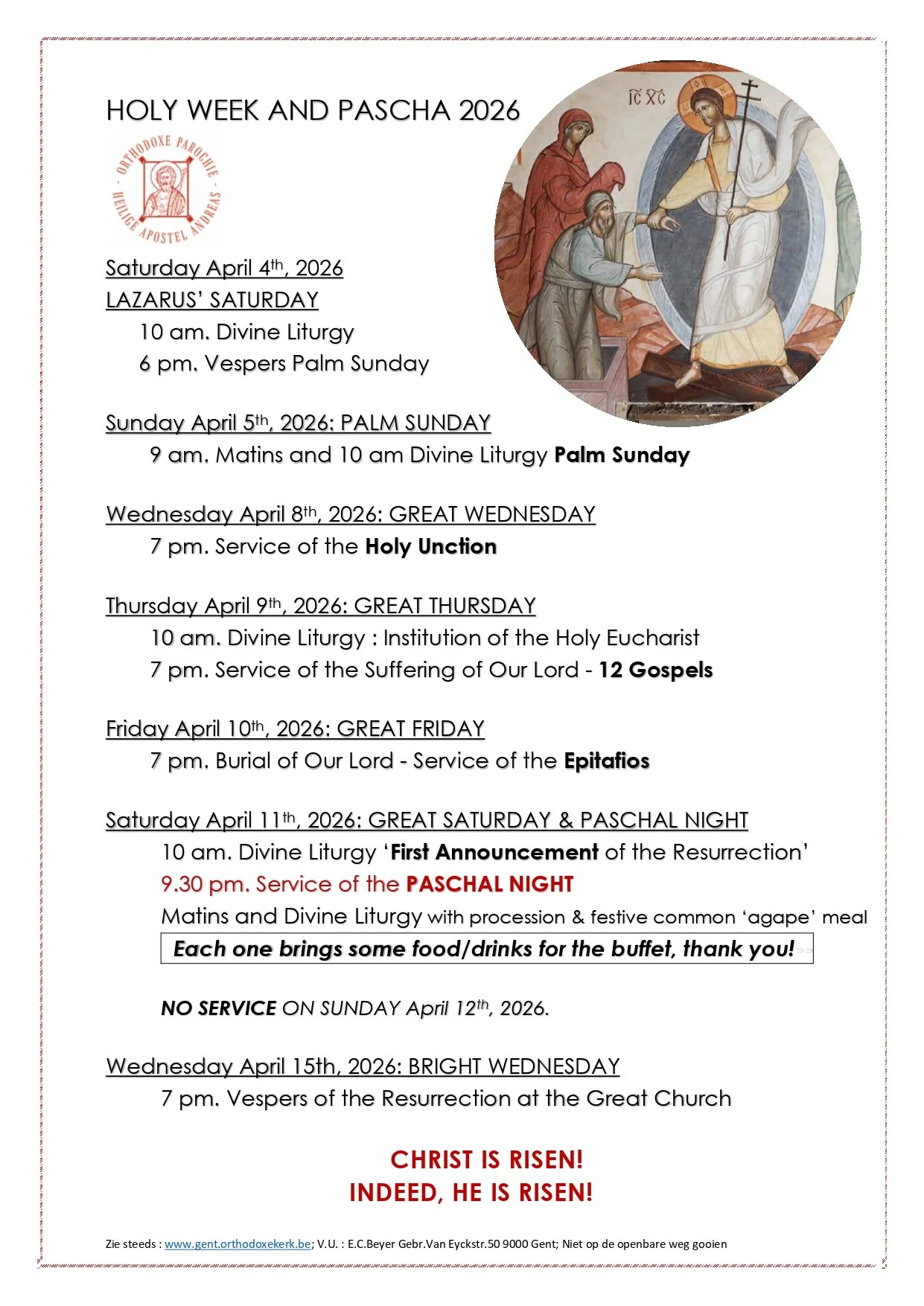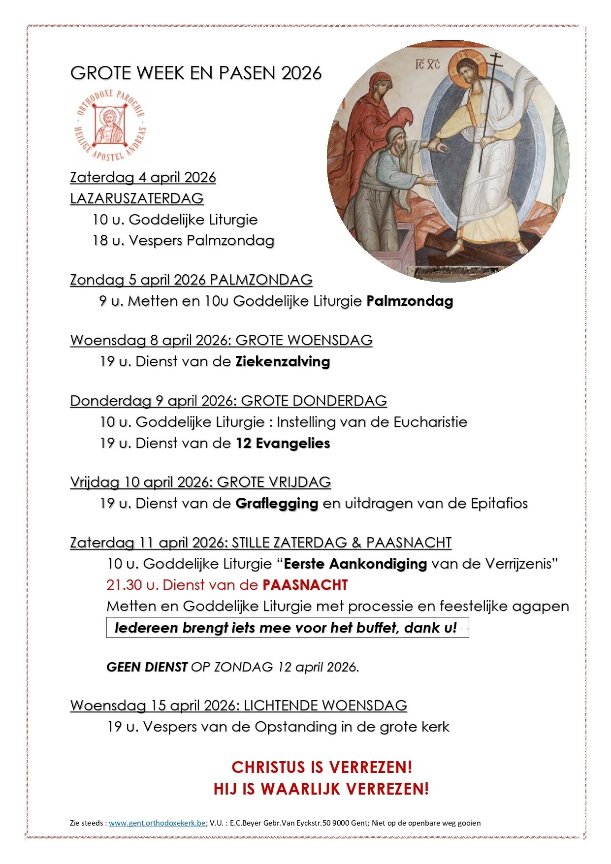 Deze parochie behoort tot het Aartsbisdom van België -Oecumenisch Patriarchaat.