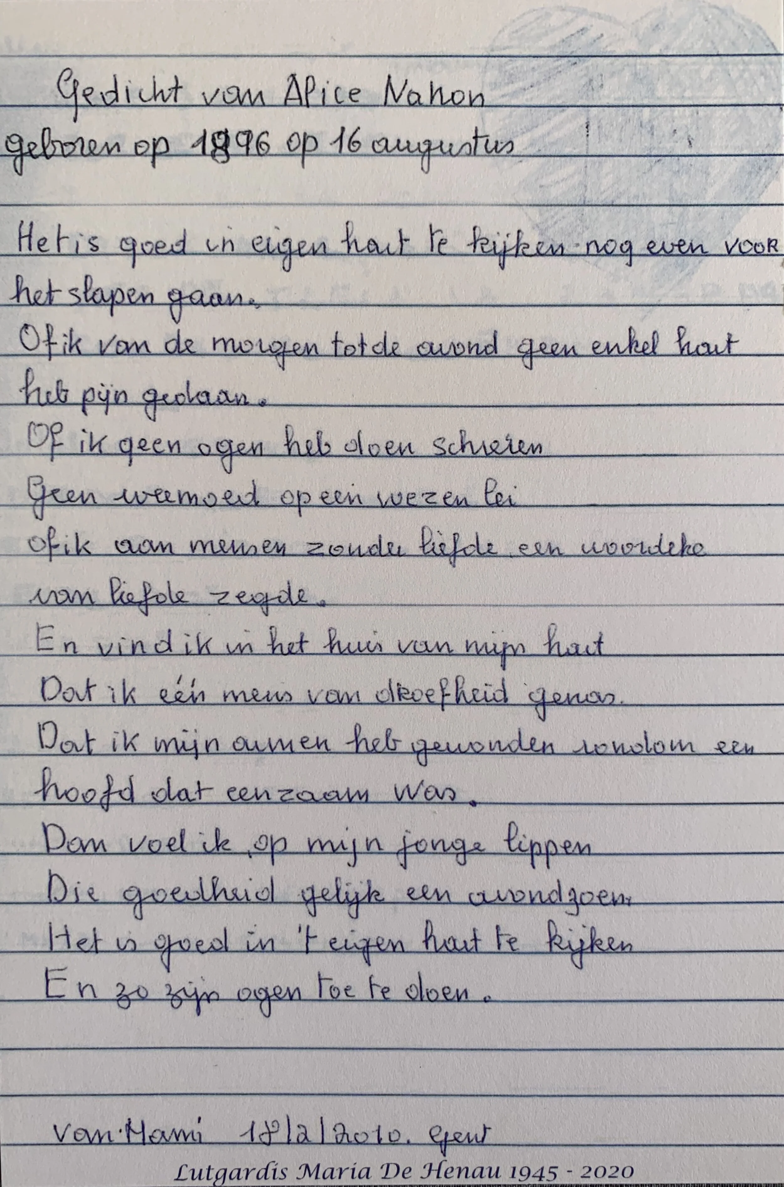 Ons christelijk medeleven gaat naar haar kinderen Bart, Hilde en Jeroen en familie.