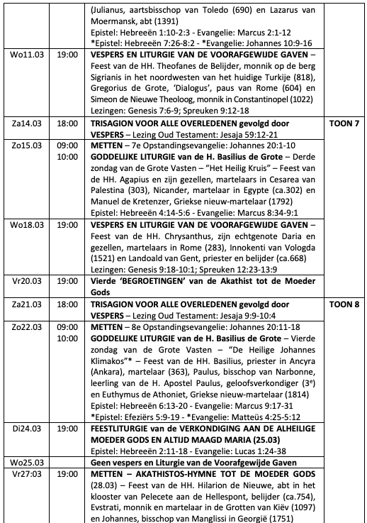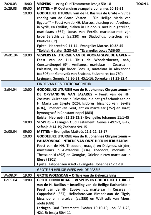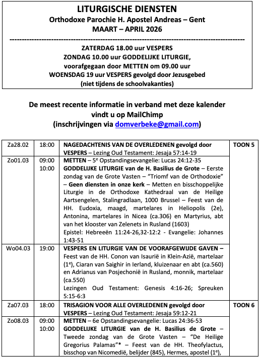 Kalender maart - april '26 - Liturgische diensten - Liturgical services We wensen u en mooie opgang naar Pasen! Orthodoxekerk Gent21 februari 2026 Facebook0 Twitter 0 Likes